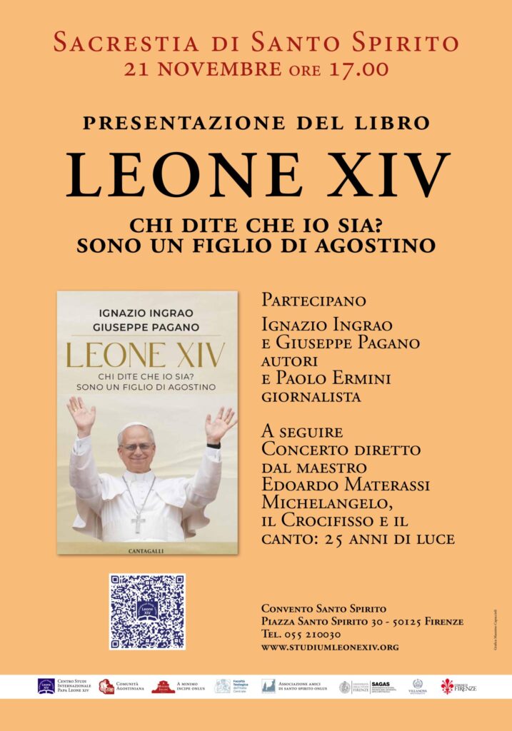 Giovedì 21 novembre 2025 la Sagrestia della Basilica di Santo Spirito accoglierà la presentazione del libro “Leone XIV. Chi dite che io sia? Sono un figlio di Agostino”, scritto da Ignazio Ingrao e Padre Giuseppe Pagano. Un’occasione per approfondire il ritratto umano e spirituale del Papa attraverso la testimonianza diretta degli autori.